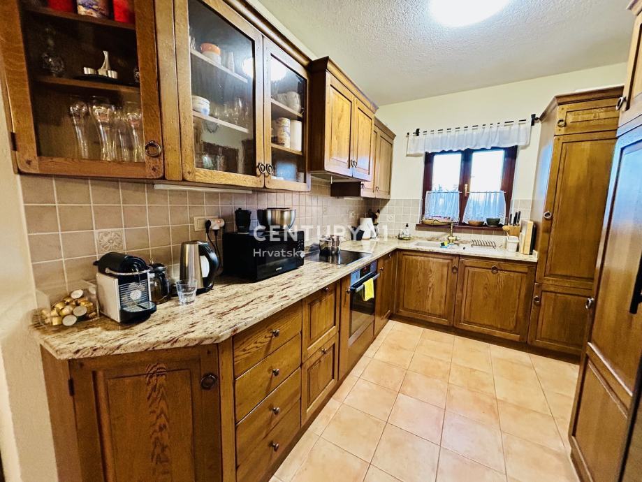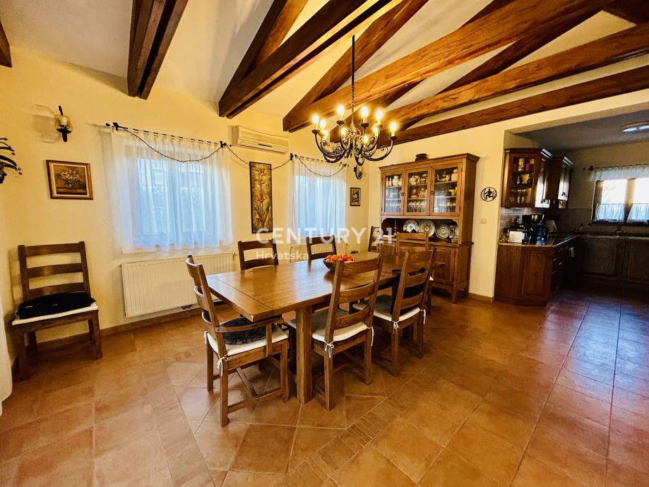 Ova prostrana i vrlo kvalitetna kuća površine 188 m2, izgrađena 2004. godine, a adaptirana 2022. godine, pružajući modernu udobnost i funkcionalnost. Orijentirana prema jugozapadu, ova kuća nudi savršen spoj prirodne svjetlosti i slikovitih pogleda.