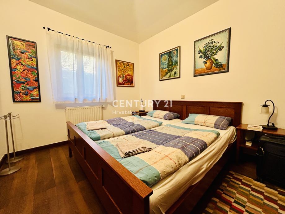 Unutrašnjost kuće odlikuje se elegantnim dizajnom i visokokvalitetnim namještajem, uključujući kuhinju s aparatima, radni stol, perilicu posuđa i rublja, te udobne i komforne spavaće sobe. Tri prostrane spavaće. Vrtna kućica veličine 10 m2 savršeno je mjesto za skladištenje alata , bicikle i slično.