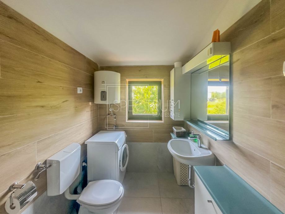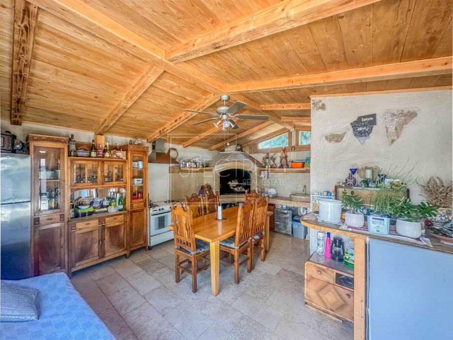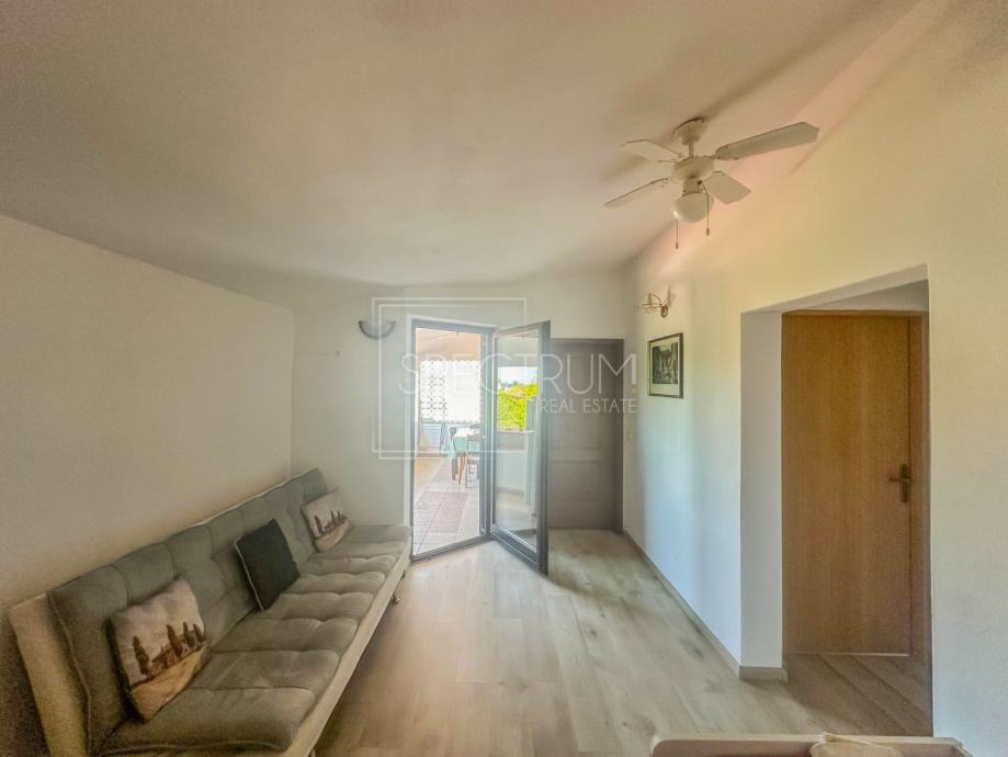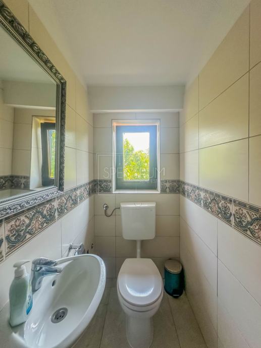Kuća se proteže kroz prizemlje i kat, a površina kuće iznosi 194.21 m2. U prizemlju se nalazi jedan stan koji se sastoji od dnevnog boravka, kuhinje sa blagovaonicom, 2 spavaće sobe, kupaonice, wc-a, hodnika, ostave te terase, idealne za uživanje na otvorenome. U prizemlju se nalazi i jedan studio apartman koji se sastoji od spavaće sobe i kupaonice. Vanjskim stepenicama se dolazi do 1.kata gdje se nalaze još 2 stana. Jedan stan se sastoji od dnevnog boravka sa blagovaonicom, kuhinje, spavaće sobe, kupaonice, wc-a i natkrivenog balkona sa kojeg se pruža pogled na more. Uz taj stan, na katu se nalazi još jedan studio apartman koji se sastoji od spavaće sobe i kupaonice. Kuća se grije putem klima uređaja i peći na drva. Kuća je 2020.godine renovirana te su postavljene nove instalacije struje i vode.