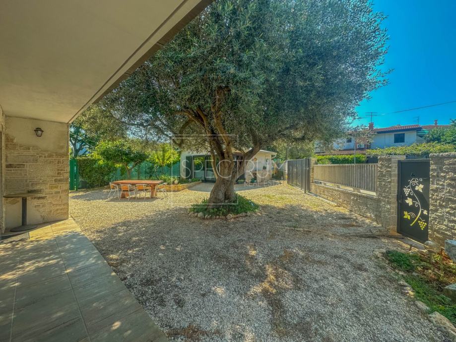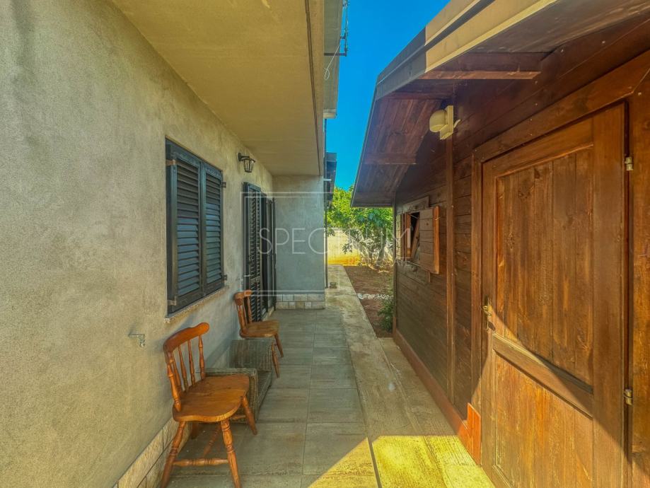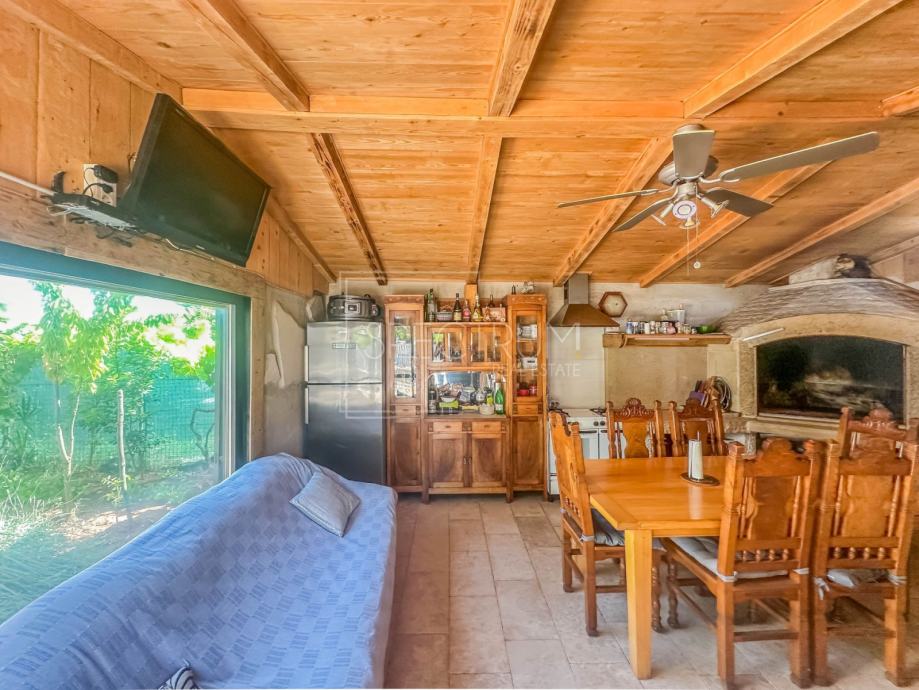 Kuća se nalazi na uređenoj i ograđenoj parceli površine 514 m2. U sklopu okućnice se nalazi konoba sa kupaonicom, idealna za druženje. Pored kuće se nalaze i 2 vrtne kućice koje mogu poslužiti kao vanjsko spremište. U okućnici postoji i prostor za parking.