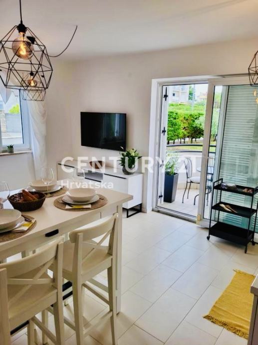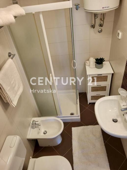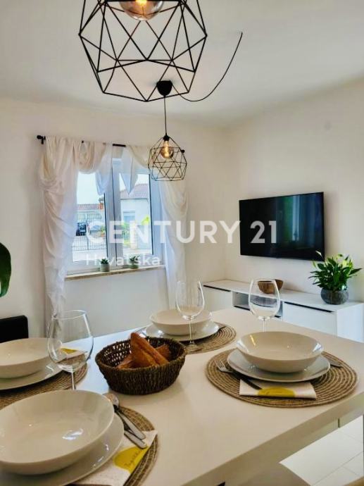 Lokacija stana ističe se blizinom mora i panoramskim pogledom na more, prirodnog okruženja i mirnom atmosferom, uz istovremeni lagan pristup svim bitnim sadržajima i prometnoj infrastrukturi. Stan je dizajnerski uređen, s naglaskom na savršen spoj funkcionalnosti i estetike, te pruža sve što je potrebno za ugodan život ili investiciju.