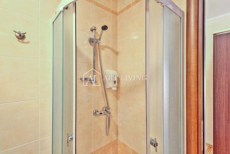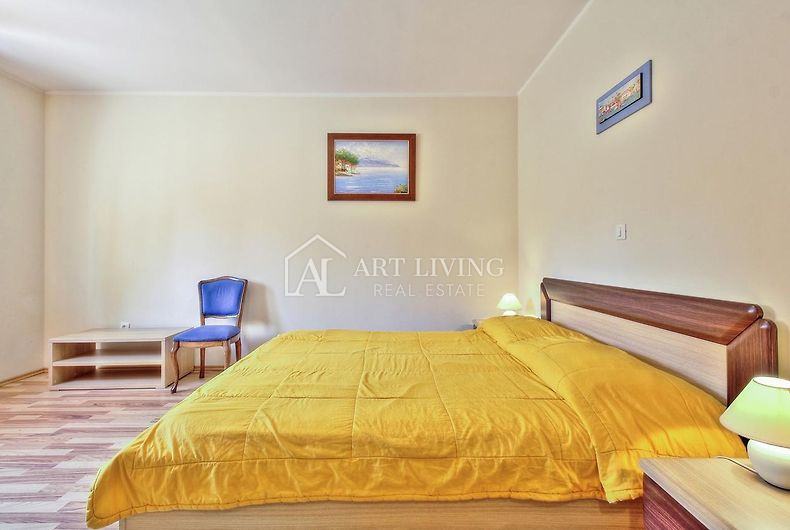 Također tu se nalazi i jedan apartman u mansardi površine 130 m2 gdje je smješten prostrani dnevni boravak sa kuhinjom i blagovaonicom, 2 spavaće sobe i kupaonica.