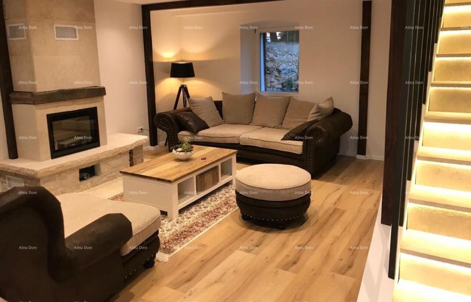 U prizemlju se nalazi otvorena kuhinja s blagovaonicom i dnevnim boravkom, ostava te zaseban WC, dok se na katu nalaze tri spavaće sobe i kupaonica.
