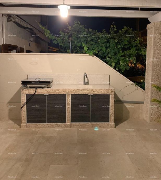 Dvorište i terasa izrađeni su od istarskog kanfanarskog kamena, a terasa s ljetnom kuhinjom pruža savršeno mjesto za druženje i opuštanje.