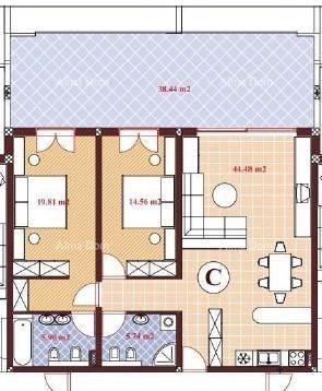 Apartman se nalazi 150 metara od plaže. Sastoji se od dnevnog boravka i kuhinje, 2 spavaće sobe, 2 kupatila, balkona. Ukupna površina 120,65 m2. Apartman se prodaje kompletno namješten.