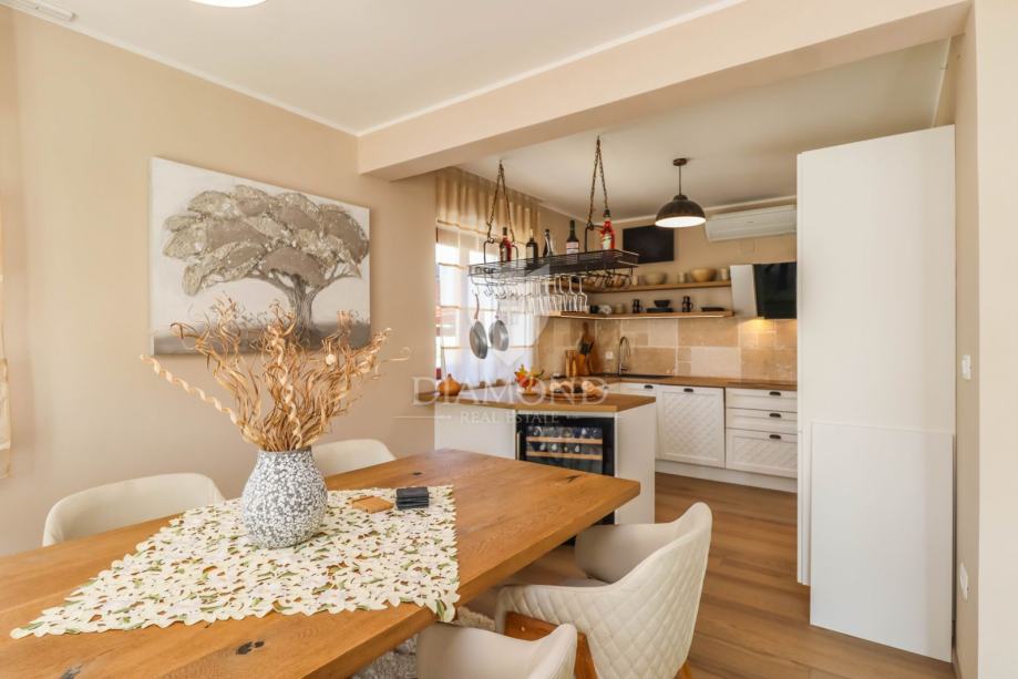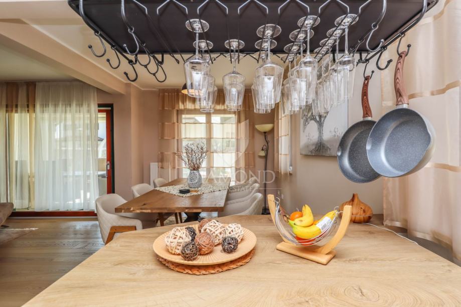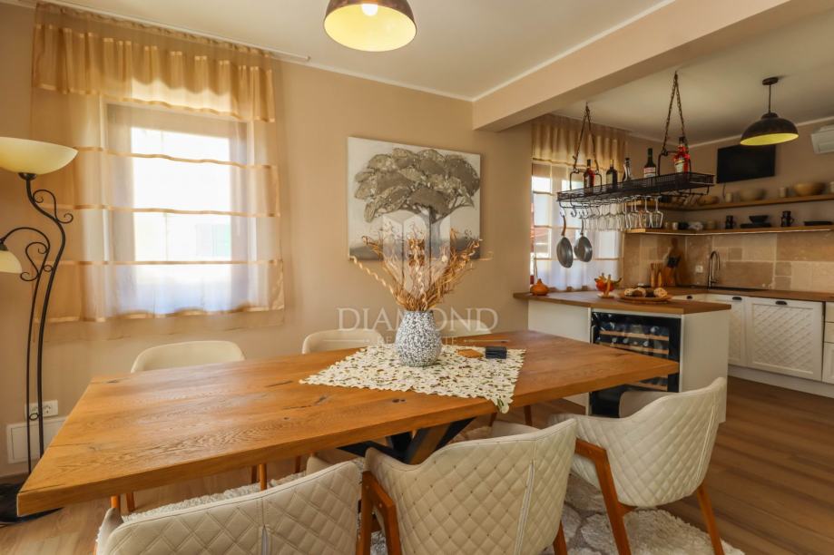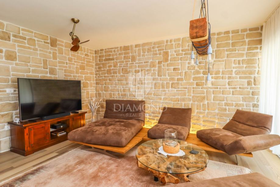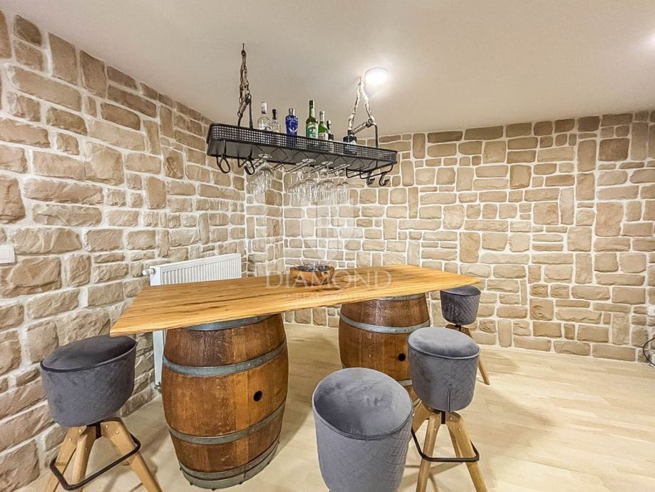 Cijela kuća je pomno uređena namještajem po mjeru uz posebnu pažnju na detalje. Time ovu kuću čini odličnom investicijom bilo za korištenje kao vlastite kuće za odmor u ljetnim mjesecima za jednu ili dvije obitelji ili kao investiciju za najam.