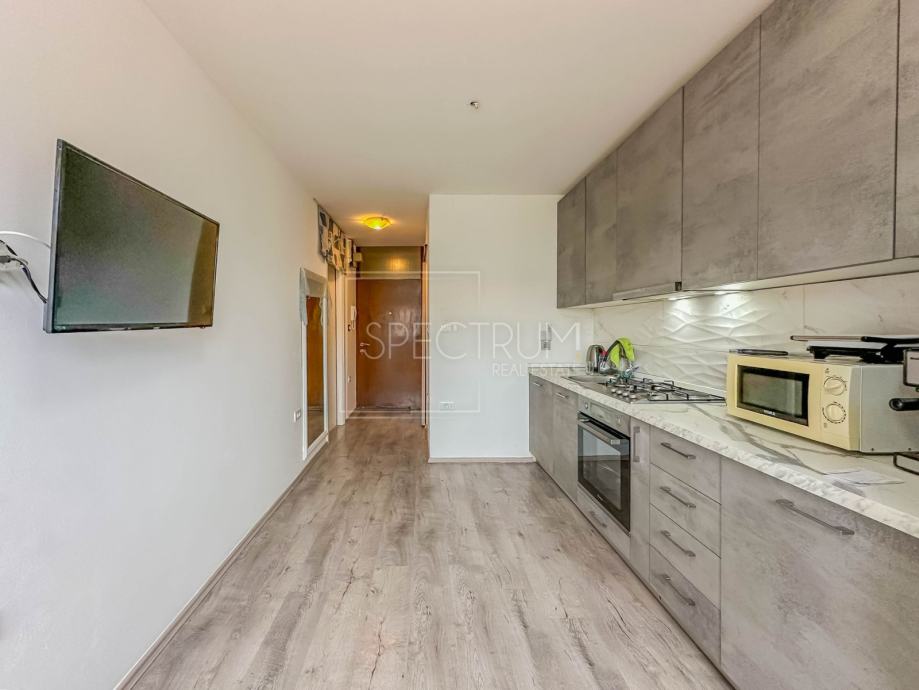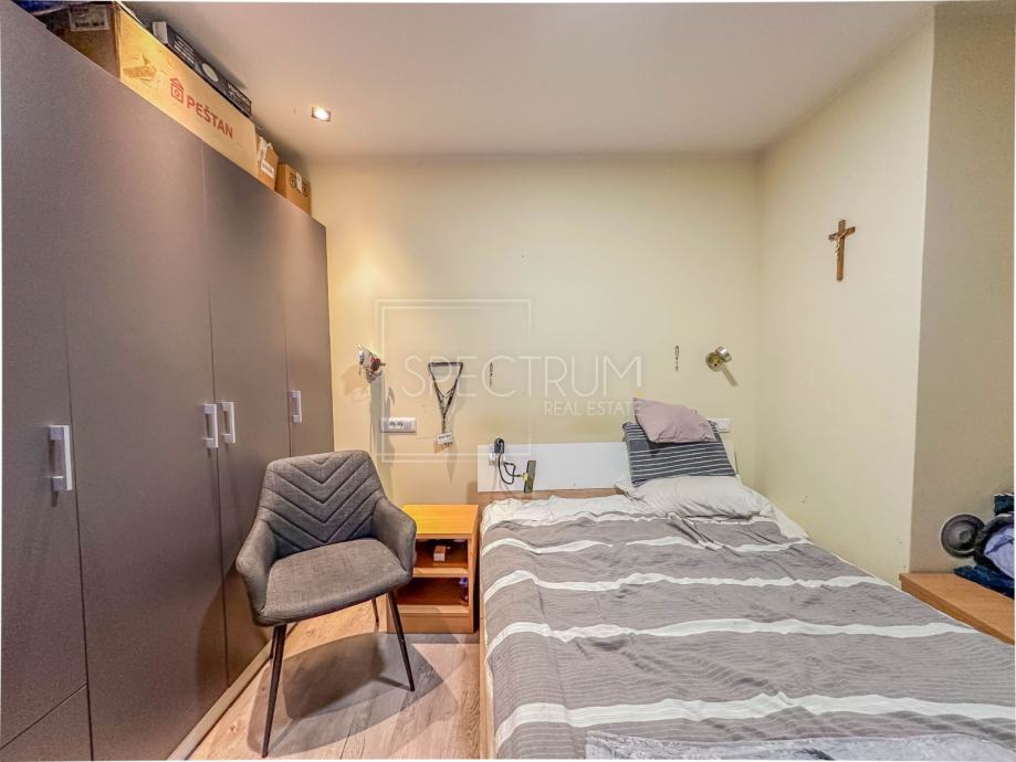 Stan se nalazi na 1.katu zgrade. Površina stana iznosi 35 m2. Stan se sastoji ulaznog predprostora, kuhinje sa blagovaonicom, dnevnog boravka, spavaće sobe i kupaonice. Grijanje je regulirano putem klima uređaja, a s obzirom da zgrada ima dimnjak i u stanu su sprovedene sve potrebne instalacije, postoji mogućnost ugradnje peći na drva. Stan se prodaje namješten. U podrumu zgrade nalazi se spremište. Parking se nalazi odmah pored same zgrade.