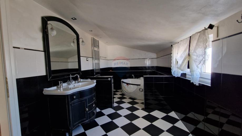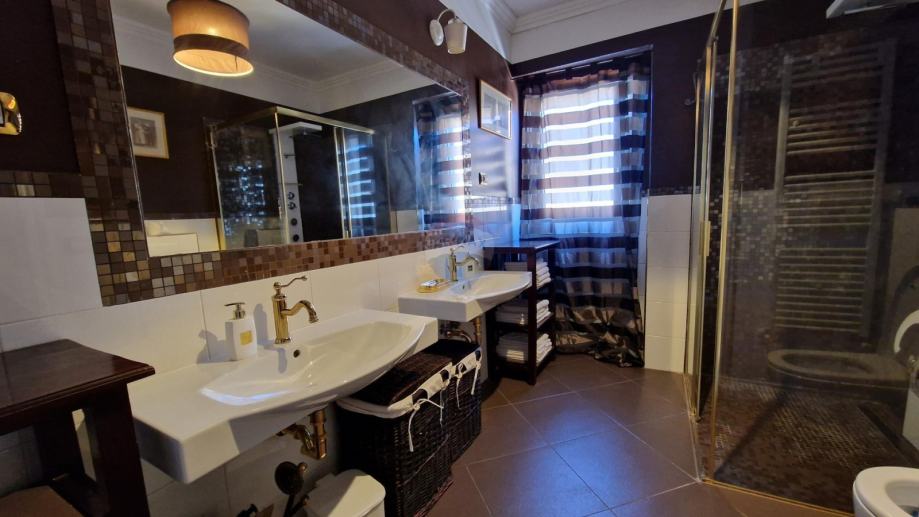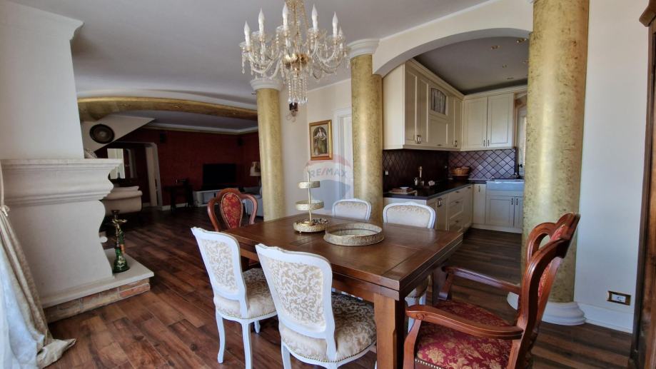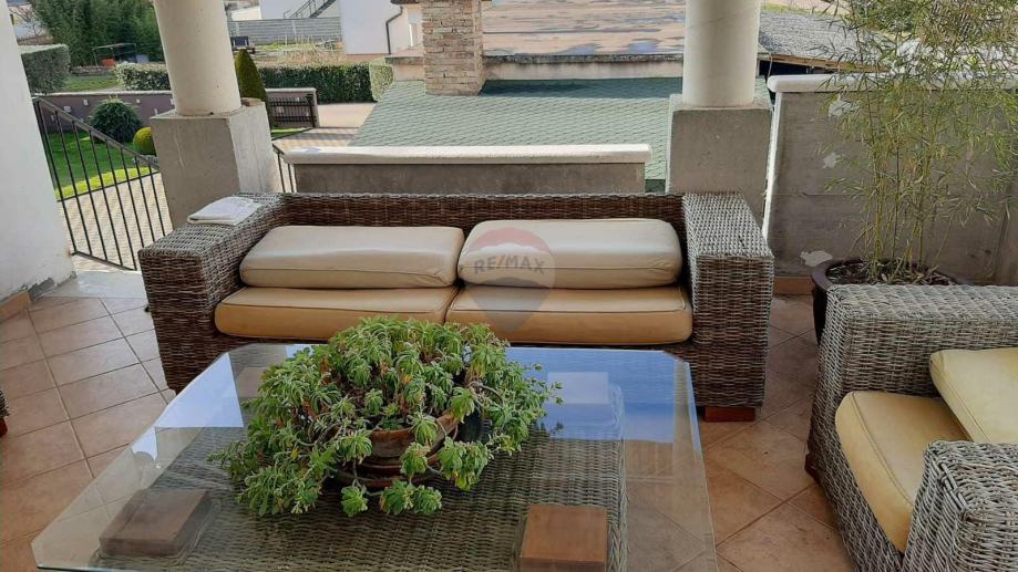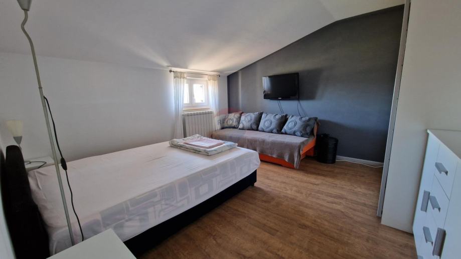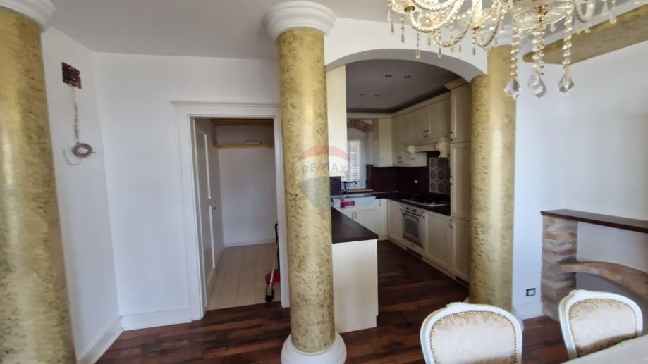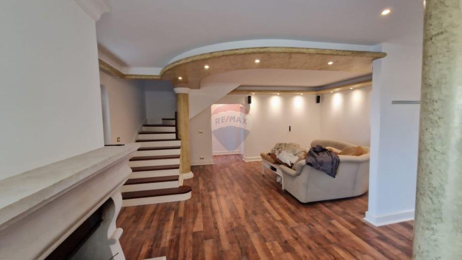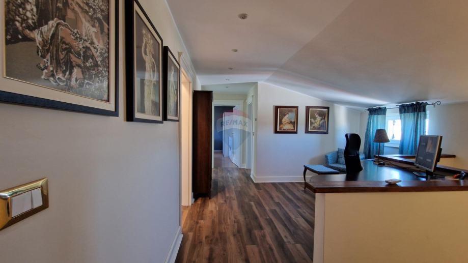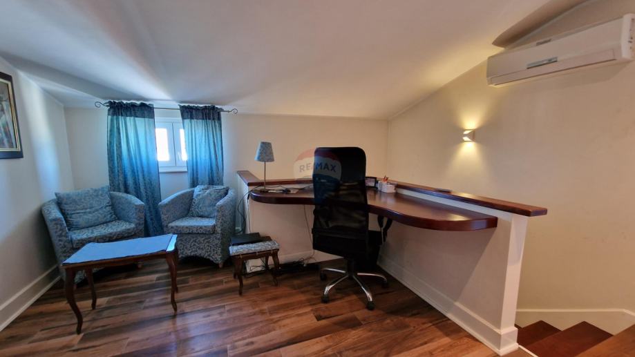 U ponudi je stan u najmu u obiteljskoj kući koji se proteže na prvi kat i visoko potkrovlje ukupne površine od 171,09 m2.
