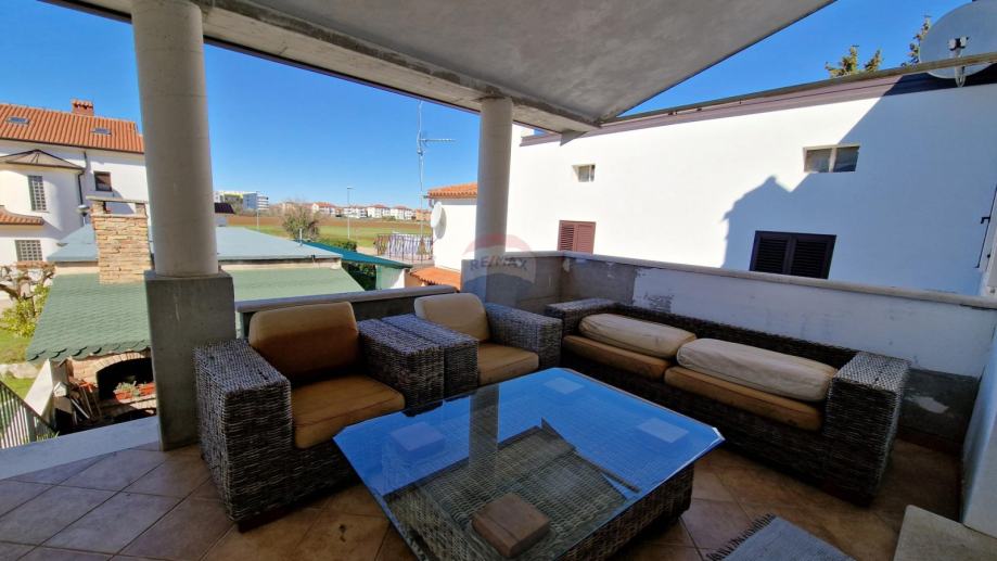 Iz jedne spavaće sobe izlazi se na balkon s kojeg se pruža otvoreni pogled na Umag.