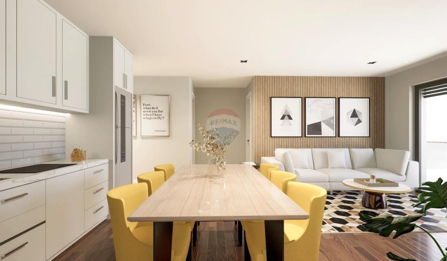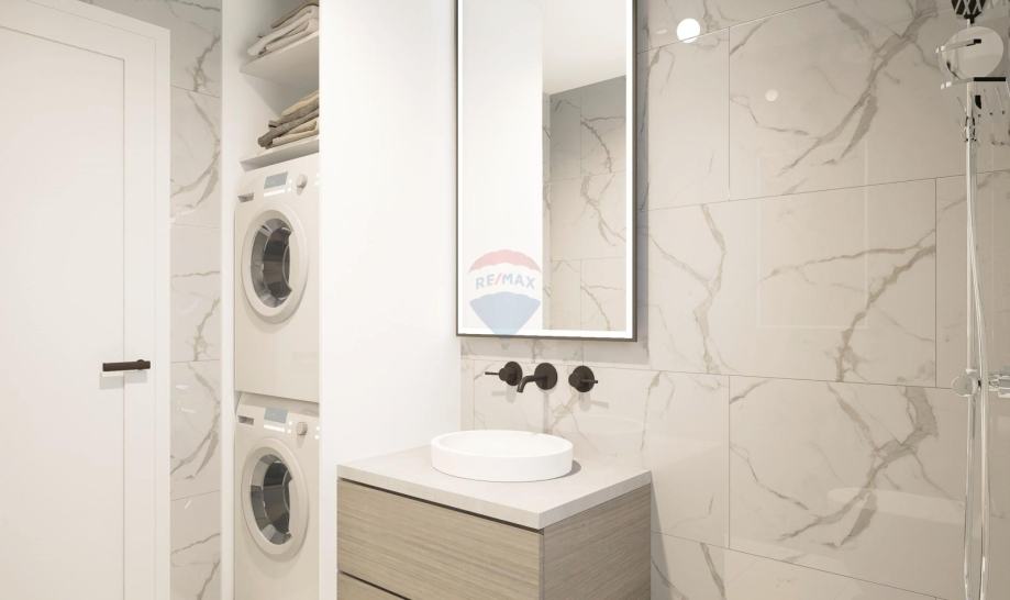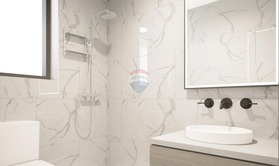 Netto korisna površina samog stana je 66,66 m2, a sastoji se od: 2 spavaće sobe, 2 kupaonice, ostave, prostranog dnevnog prostora otvorenog koncepta s kuhinjom, blagovaonicom i dnevnim boravkom, te velike natkrivene terase s pogledom na more. Stanu dodatno pripada i veliko spremište u podrumu od cca. 11 m2, terasa na krovu zgrade od cca. 36 m2 i parkirno mjesto s punjačem za el. vozila.