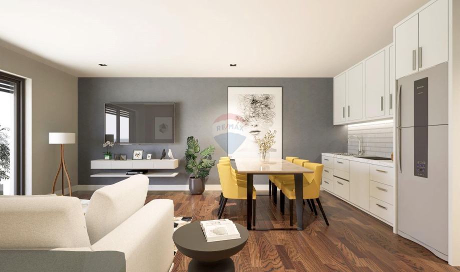 Stan je opremljen podnim grijanjem i inverter klima uređajem za grijanje/hlađenje. Prodaje se po sistemu "ključ u ruke", bez namještaja.