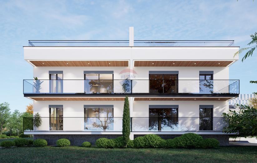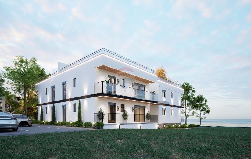 Moderna novogradnja na atraktivnoj lokaciji u predgrađu Umaga. Smještena u mirnom okruženju, s predivnim pogledom na zelenilo i more, na svega 2 km od plaža i centra grada.