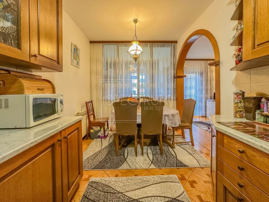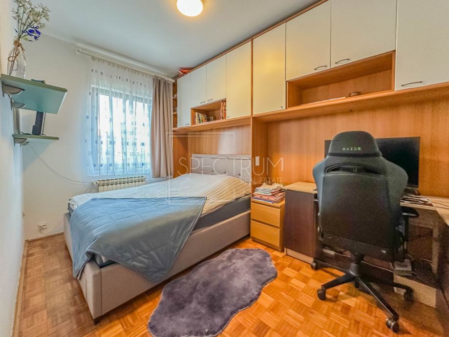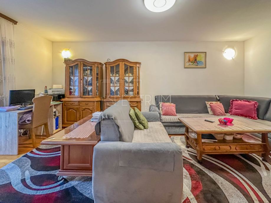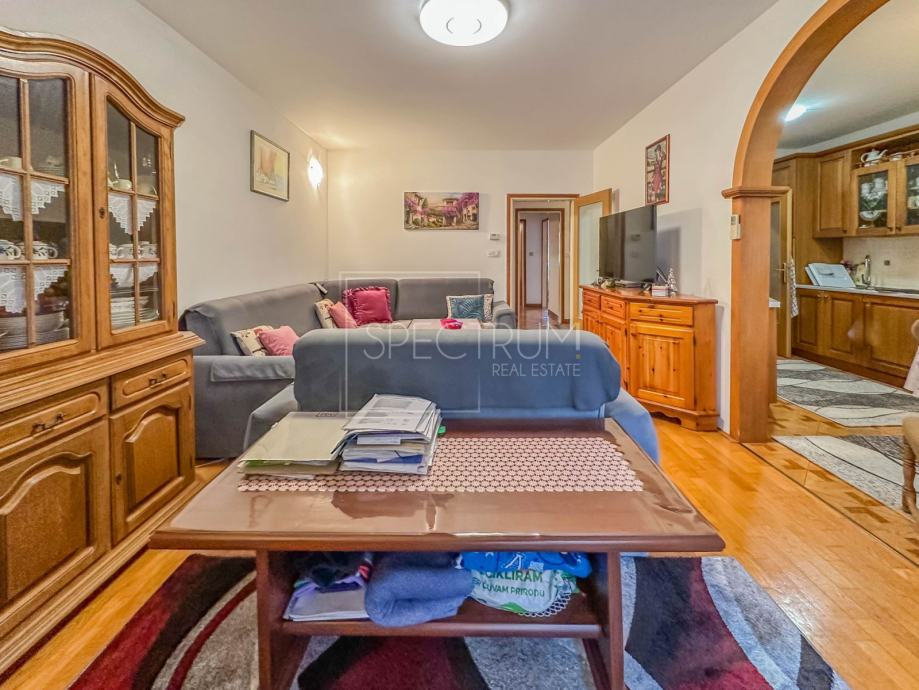 Stan se nalazi u visokom prizemlju stambene zgrade. Površina stana iznosi 84.13 m2. Stan se sastoji od ulaznog hodnika, dnevnog boravka, kuhinje sa blagovaonicom, 2 spavaće sobe, kupaonice, wc-a, ostave i loggie. Na loggiu se dolazi iz dnevnog boravka. Zbog svoje veće površine i dobrog rasporeda, stan zaista pruža komfor. Grijanje je regulirano putem klima uređaja i centralnog grijanja na drva. Sve instalacije struje i vode promijenjene su 2008.godine, a nedavno je postavljena nova stolarija i dodatna izolacija u spavaćim sobama i na podu. Stanu pripadaju i 2 spremišta koja se nalaze u suterenu zgrade. Fasada zgrade je renovirana 2021.godine. Privatni parking namijenjen isključivo za stanare se nalazi odmah pored same zgrade.
