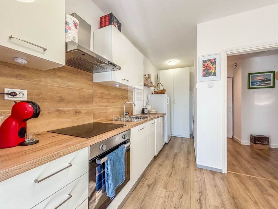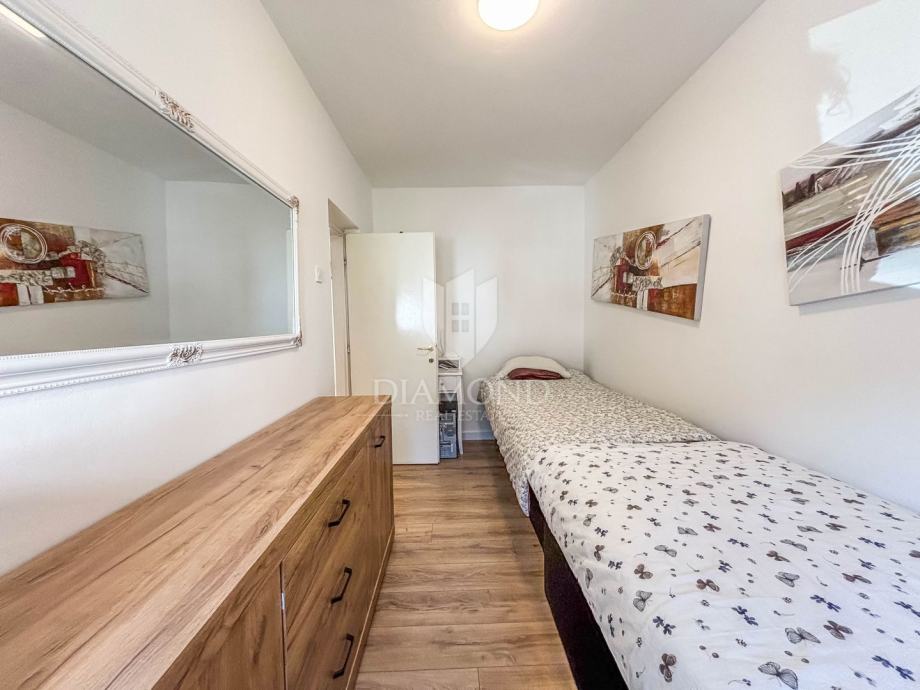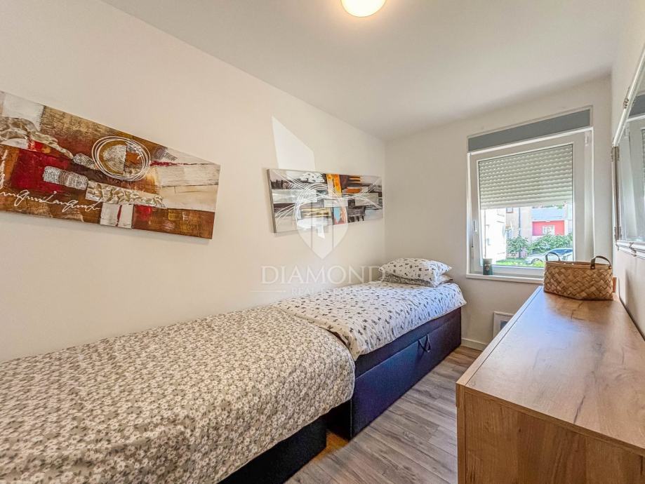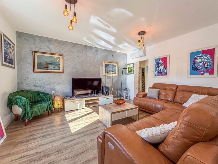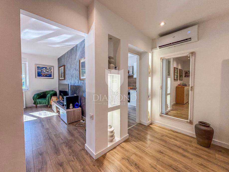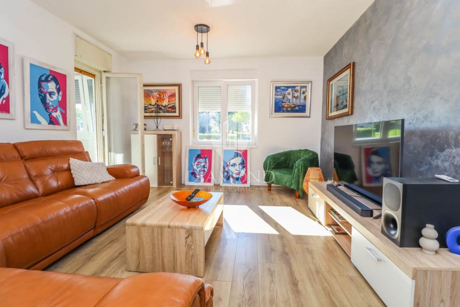 Stan se nalazi na visokom prizemlju i prostire se na više od 73 m², a raspored prostorija osigurava udobnost i funkcionalnost. Sastoji se od dvije prostrane spavaće sobe, dva balkona, kupaonice, velikog dnevnog boravka s izlazom na zatvoreni balkon, te osvjetljenog hodnika koji povezuje sve prostorije. Prostor odiše svjetlošću i ugodom, a zahvaljujući zatvorenom balkonu nudi dodatni kutak za opuštanje ili boravak tijekom cijele godine. Stan je temeljito renoviran 2024. godine — uključujući nove instalacije vode i struje — što novim vlasnicima omogućuje bezbrižno useljenje bez dodatnih ulaganja. Grijanje i hlađenje je regulirano putem dva klima uređaja, čime je stan ugodan tijekom svih godišnjih doba. Uz stan dolazi i spremište koje je upisano u vlasništvo, kao i osigurano parkirno mjesto na korištenje. Vlasnički list je uredan, a stan je odmah useljiv.