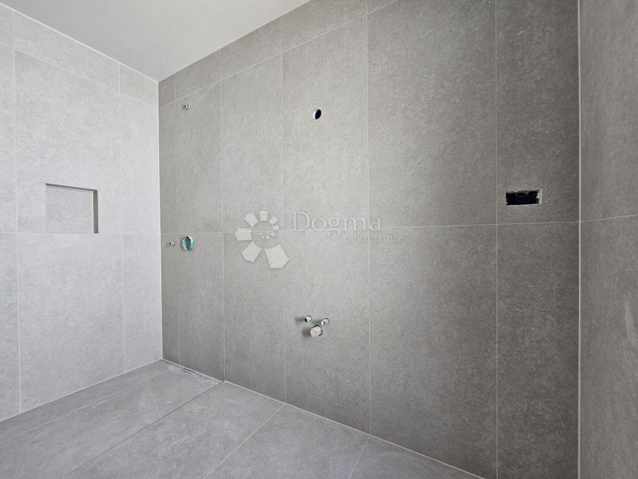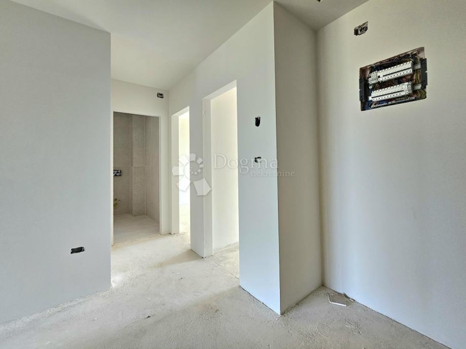 Stan se nalazi na prvom katu, a najveća prednost mu je prostrana natkrivena terasa 17,10m2 (8,55m2 NETO) a sastoji od ulaznog prostora, dvije spavaće sobe, spremišta, kupaone i prostranog dnevnog boravka s kuhinjom. Ispred ulaza u stan nalazi se ugradbeni ormar, pružajući dodatni prostor za pohranu.