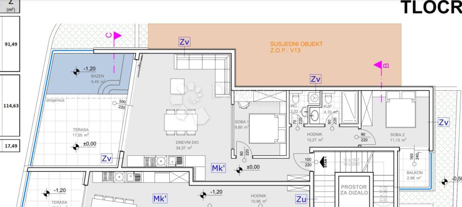 Budući vlasnik uživati će u punom luksuzu u stanu sa privatnim bazenom koji se gradi po visokim standardima gradnje, uz vrhunski materijal i Smart upravljanjem putem aplikacije na mobilnom uređaju. Grijanje je riješeno putem klima uređaja u svakoj prostoriji i podnim grijanjem sistemom dizalice topline.