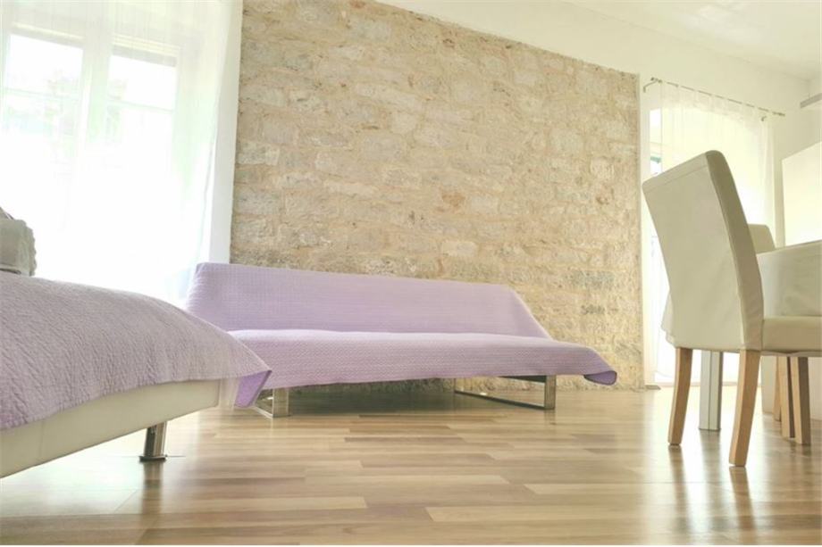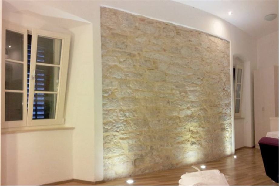 Umjereno visoke prostorije, ulazna vrata, komotno drveno stubište i autentično očuvana kamena fasada daju pravi dalmatinski ugođaj. Stan je prozračan i osunčan. Južno je orijentiran.