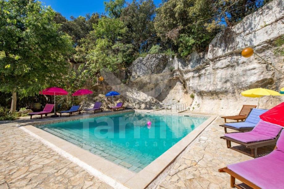 Nedaleko od samog centra grada Pule na mirnoj lokaciji smještena je ova unikatna vila u kamenu s bazenom. Zemljište na kojem se nalazi ova jedinstvena nekretnina proteže se na gotovo 2500 m2, od čega nam je 1200 m2 pogodno za gradnju novog objekta. Stambena površina vile iznosi 260 m2. Mirnoj lokaciji doprinosi činjenica da se nekretnina nalazi u sklopu starorimskog kamenoloma čije se vizure mogu vidjeti u samoj vili, a isto tako i uz dvorište i bazen koji je omeđen prirodnom stijenom.