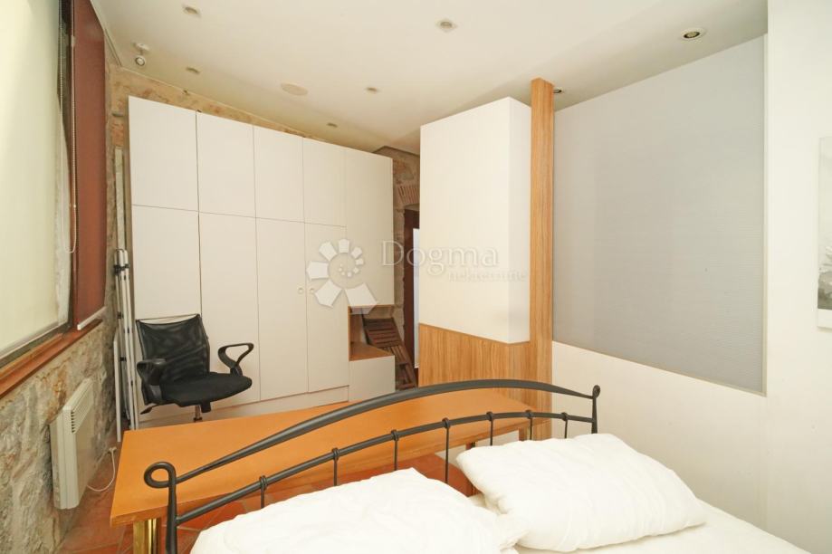 Dio prizemlja u zemljišnim knjigama evidentiran je kao poslovni prostor te se može koristiti za tihe djelatnosti, iako to nije uvjet za korištenje nekretnine isključivo u stambene svrhe. Na zapadnoj strani kuće nalazi se zaseban ulaz s javne šetnice u potpuno odvojeni APP/STUDIO površine 29 m2, koji se može samostalno iznajmljivati tijekom cijele godine bez utjecaja na privatnost glavnog stambenog dijela.