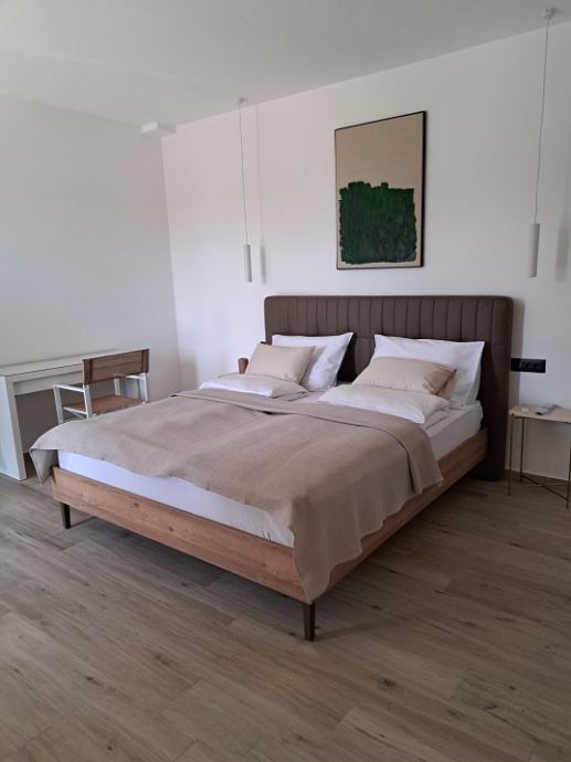 Vrhunska oprema. Stolarija, sanitarije, armature iz zida direktno, Marazzi keramičke pločice. Spider staklene ograda na terasi.