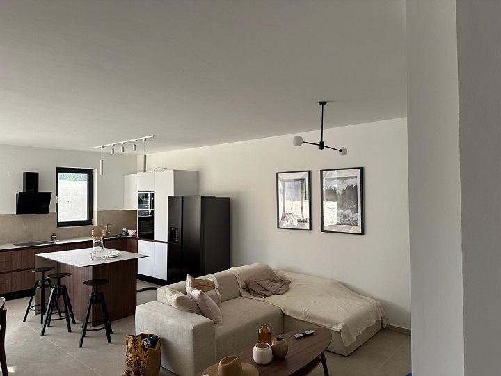 Ima 4 spavaće sobe s kupaonama, dnevna soba s blagovaonom i kuhinjom te veliku terasu.