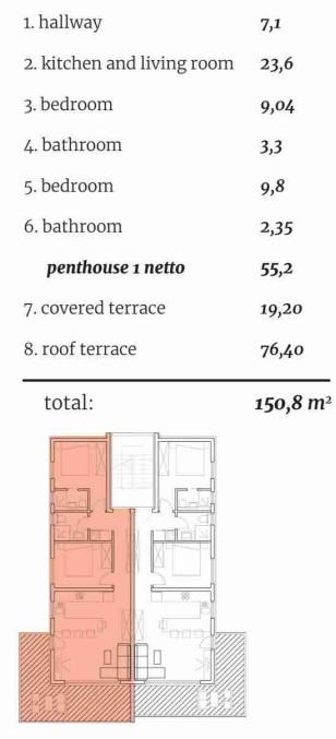 We mediate the sale of a penthouse on the 2nd floor of an urban villa with six apartments in Trogir on the island of Čiovo. The construction of the building has started, and the planned completion of the works is December 2024. The ground floor of the urban villa consists of two apartments with terraces and a private garden, where the buyer will be able to use the facilities of his choice (eg hydromassage pool, sunbeds, electric grill, etc.). The apartment will consist of two bedrooms with their own bathrooms, a kitchen with a dining room and a living room with access to the terrace and garden. Each room will have its own air conditioner and the apartment will have underfloor heating.