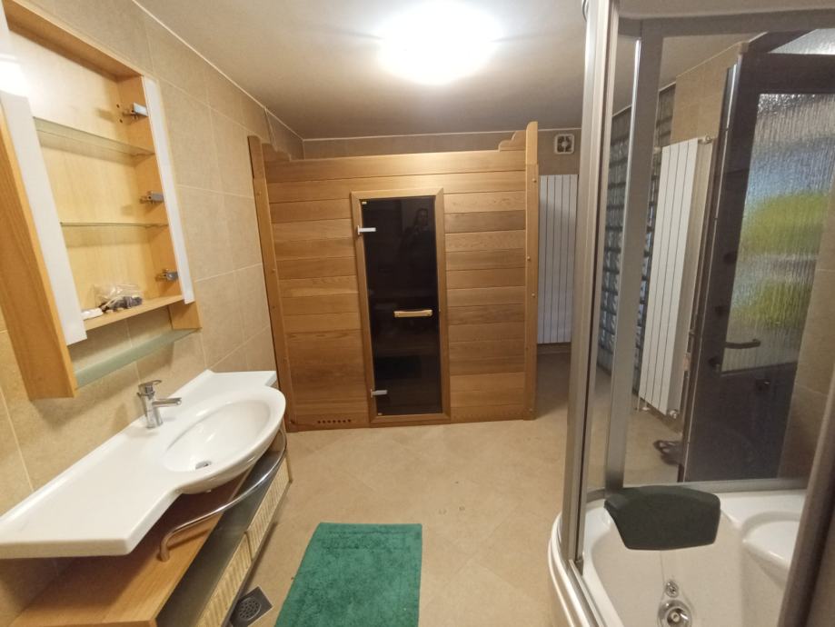 koji se nalazi u podrumu kuće,grijanje je izvedeno kao podno i/ili radiatorima, prekrasni kamini na drva su u funkciji !