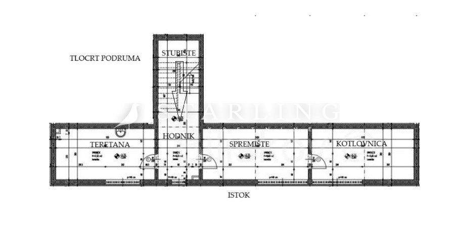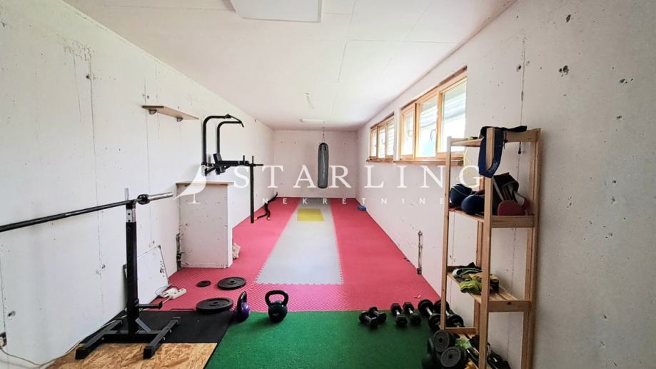 U podrumu se nalazi kotlovnica, spremište, prostorija za vježbanje i hodnik.
