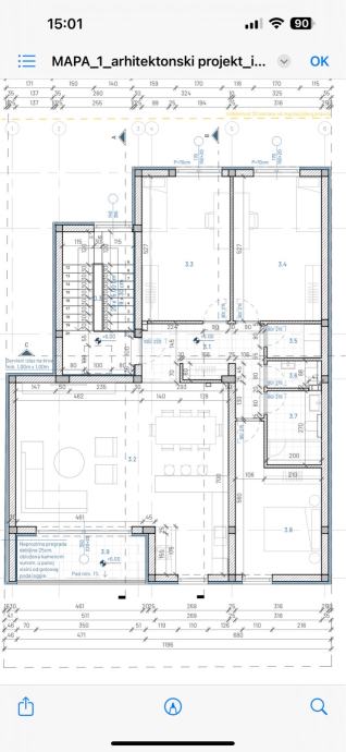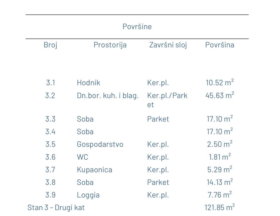 Stambeno 121,85m2 garaža 16m2x0,6=9,6 m²