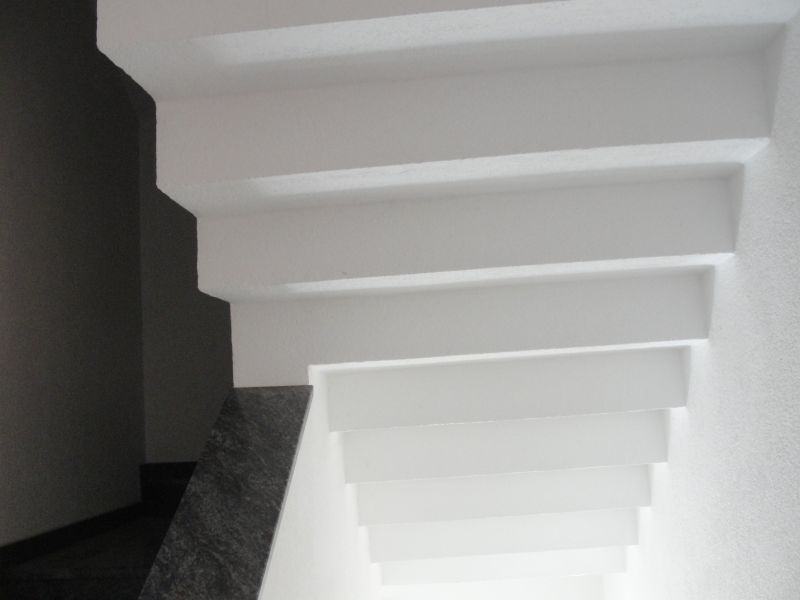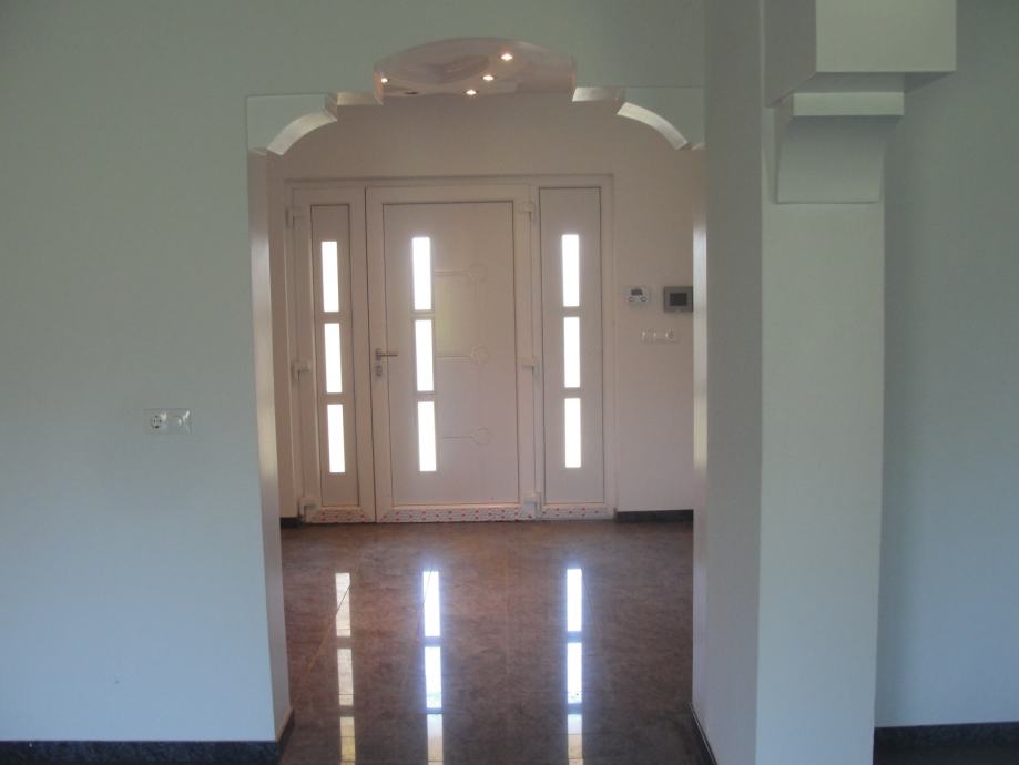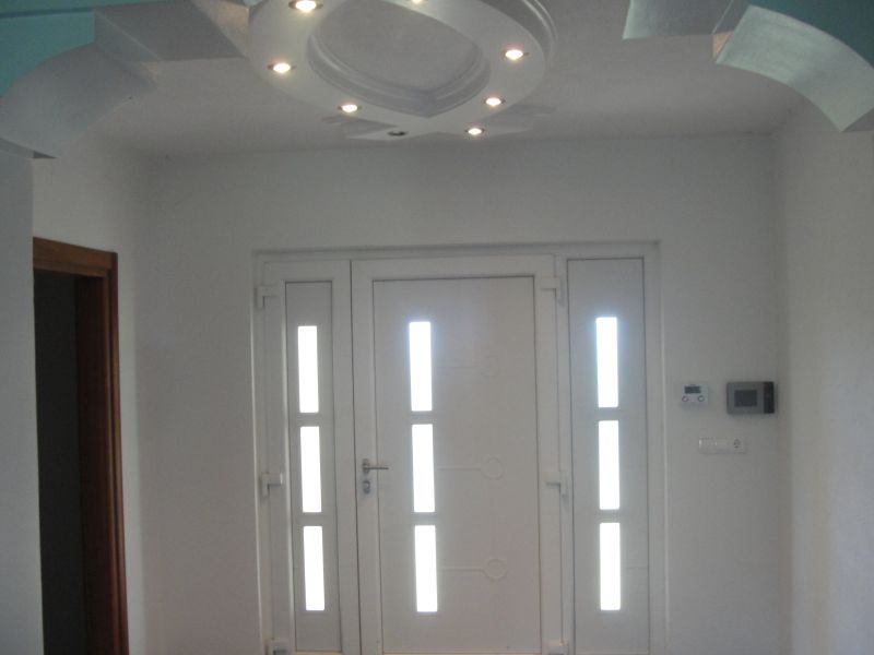 u hodniku,prizemlju i na katu u svim prostorijama su od - GIPSA. Kamin u dnevnom boravku je
