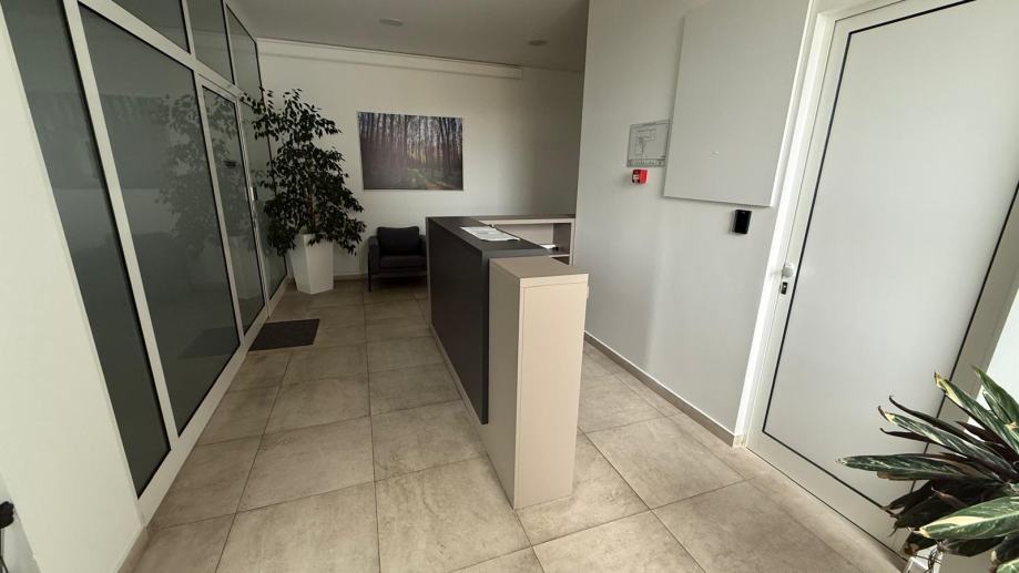 Pregradni zidovi napravljeni od kombinacije gips-kartonskih ploča i staklenih stijena te je moguće prilagoditi raspored potrebama zakupnika.