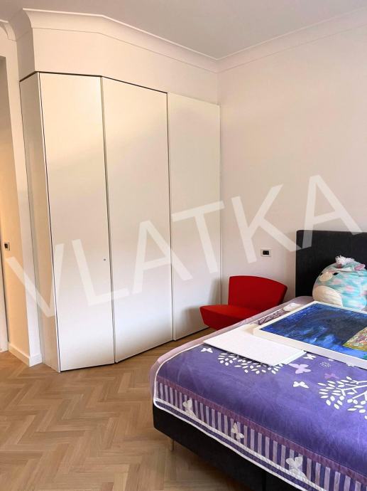 Sastav stana: prostrani dnevni boravak s blagovaonicom, kuhinja, dvije spavaće sobe, manja soba pogodna za rad ili garderobu, dvije kupaonice, hodnik te mali balkon. Uz stan dolazi i šupa.
