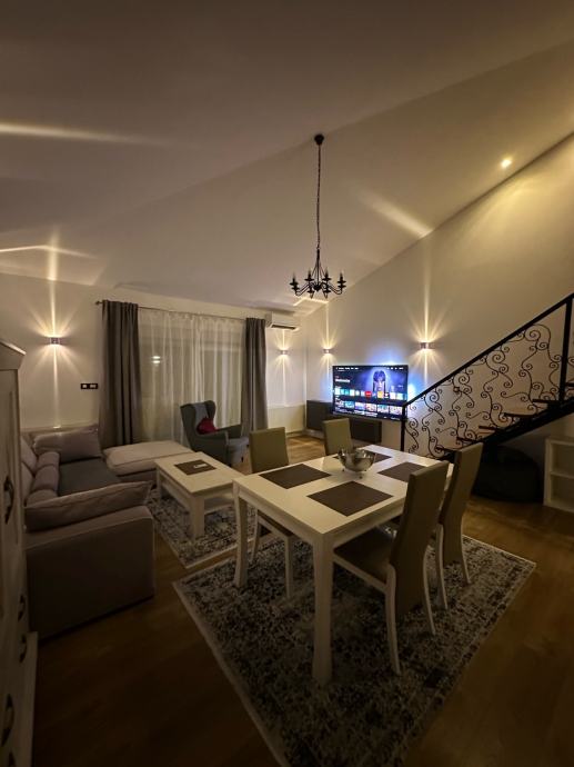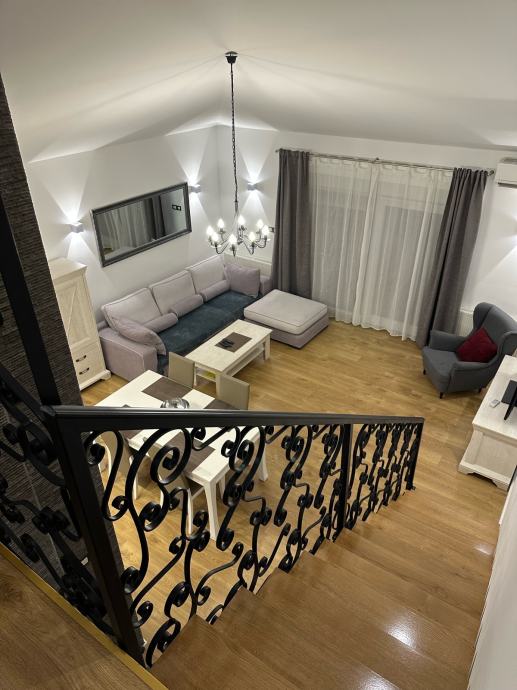Do 1.7 znajmljujem dvosoban novouređen moderan stan na predivnoj mirnoj lokaciji okružen privatnim vilama i prekrasnim vrtovima,Karma kolovare ,kompletno namjesten sa parkirnim mjestom ,pogledom na more,50 m od plaže i šetnice