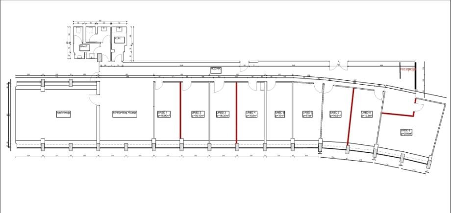 -9 zasebnih uredskih jedinica (fleksibilna organizacija),