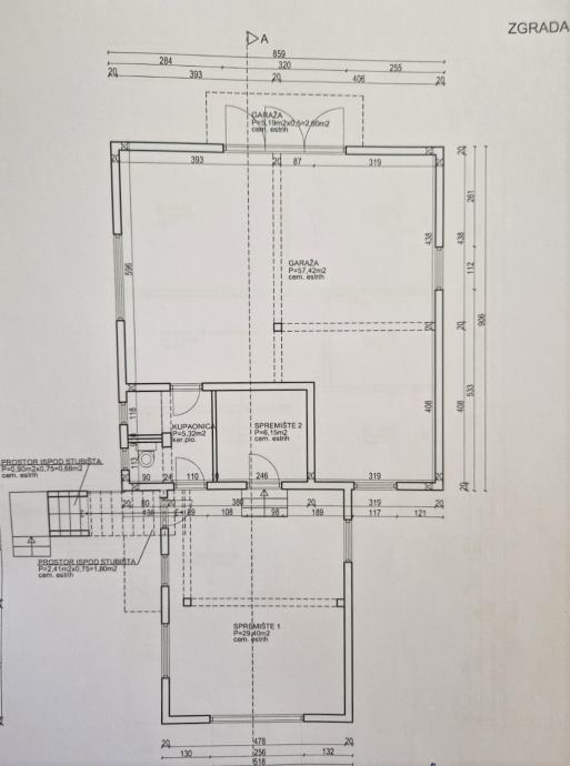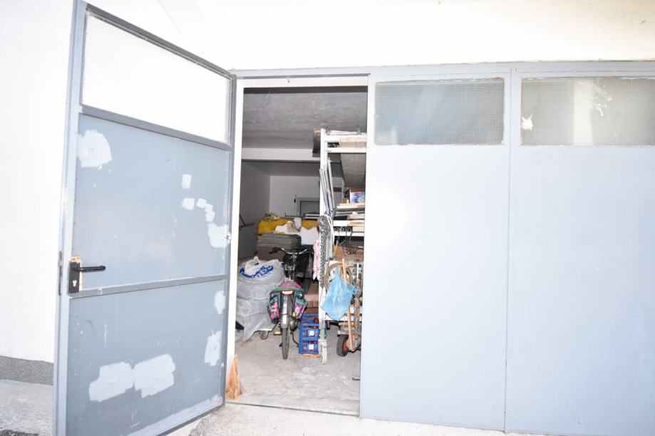 U prizemlju kuće se nalazi velika garaža koja ima prilaz direktno iz ulice. Uz nju se nalazi još jedna veća prostorija i uređena kupaonica. Obzirom na kvadraturu i postojanje parkirnih mjesta u dvorištu, ovaj prostor se po potrebi može prenamijeniti u stambeni. S druge strane kuće, s prilazom iz vrta ulazi se u još jedno spremište.