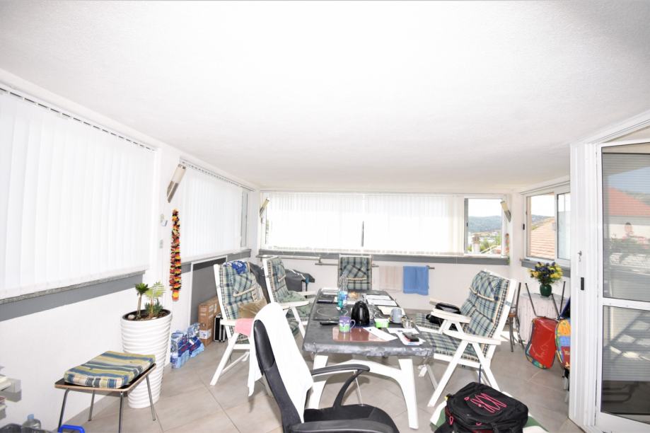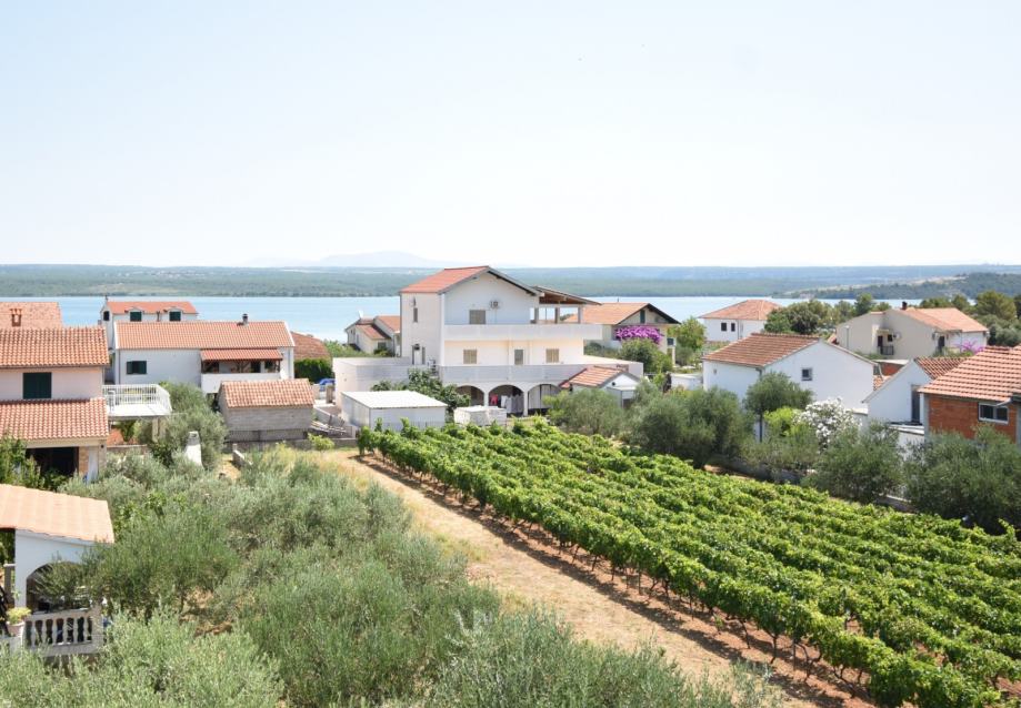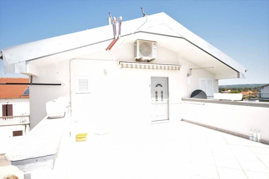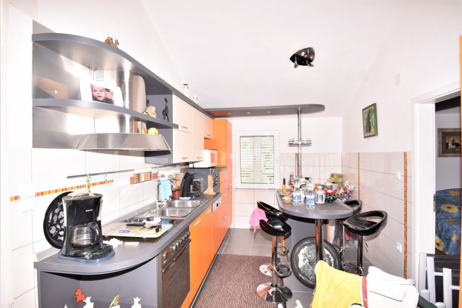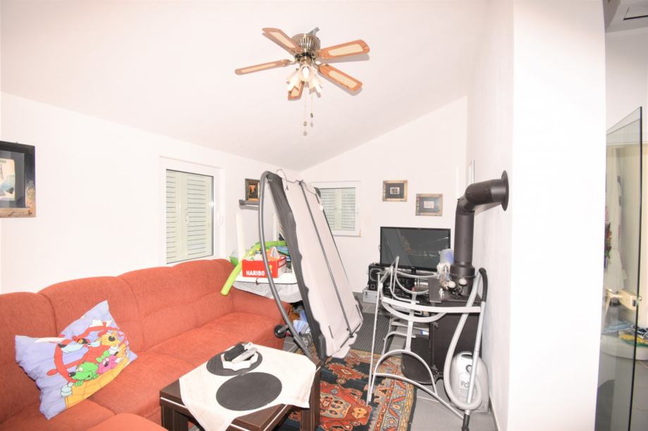 Na drugom katu se nalazi dvosoban stan s velikom ne natkrivenom terasom s koje se pruža pogled na more.