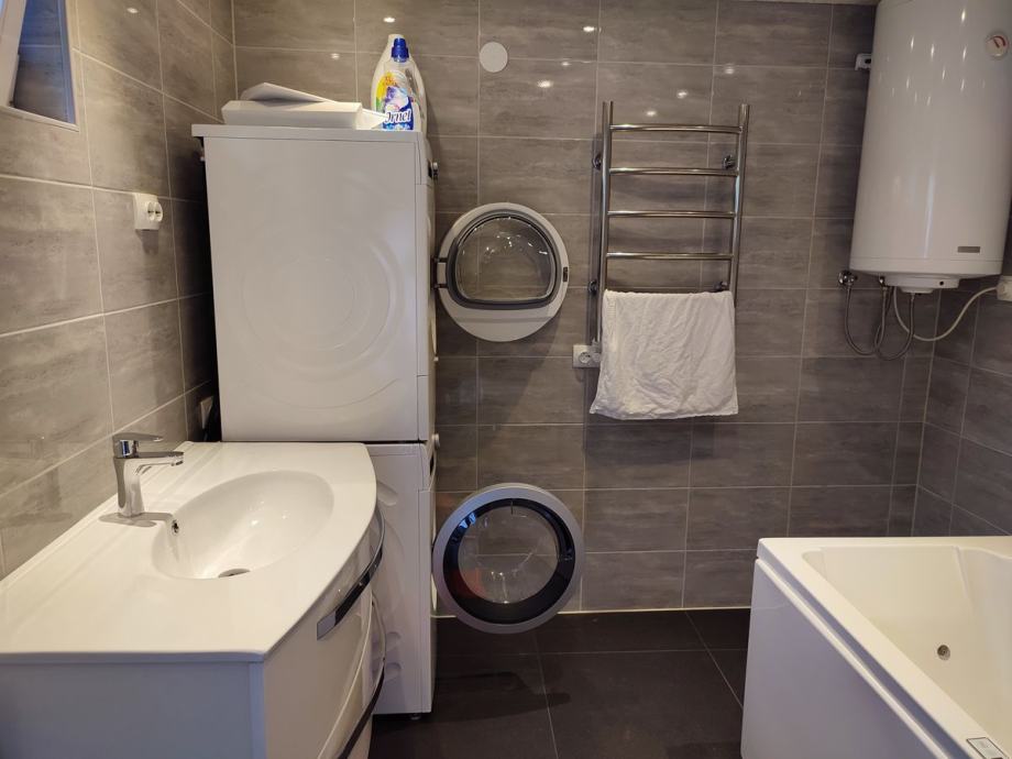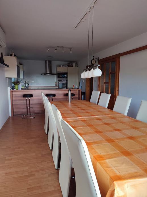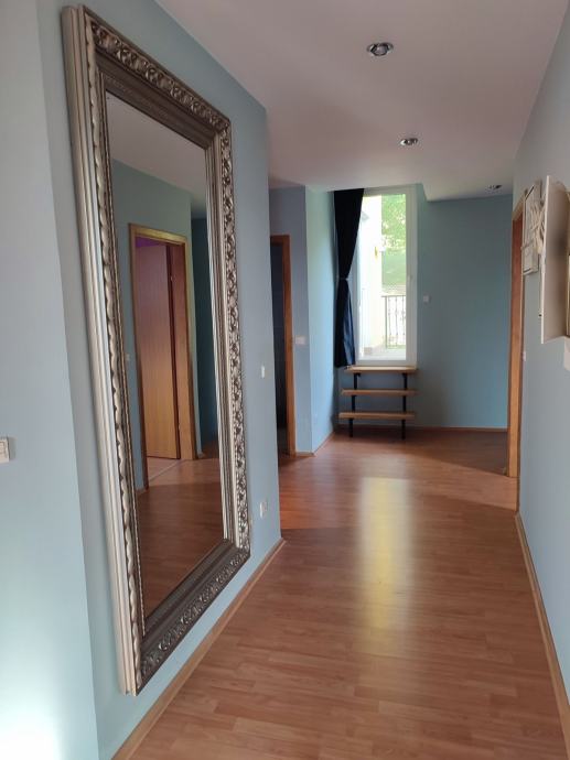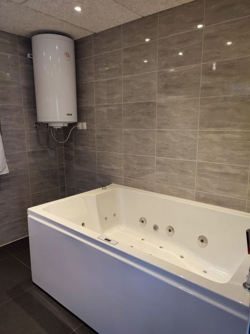 Kat: hodnik, manji WC sa tuš kabinom, dnevna soba s izlazom na balkon, velika kuhinja s blagovaonom i izlazom na balkon te velika kupaona sa jacuzzi kadom, perilicom i sušilicom rublja.