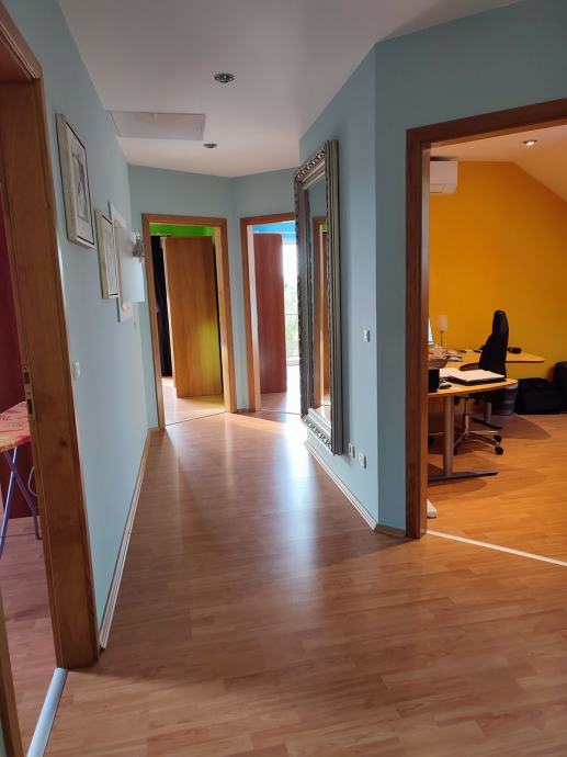 Stepenice za visoko potkrovlje u kojem su 3 spavaće sobe (dvije spavaće sobe imaju izlaz na balkon), radna soba, kupaona i izlaz na veliku terasu u sklopu koje je jedno spremište.