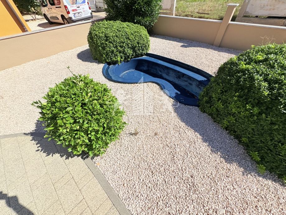 Okućnica je lijepo uređena i okružena zelenilom, a u vrtu se nalaze roštilj, podzemna cisterna za vodu kapaciteta 7 m³ te septička jama. Zahvaljujući prostranom dvorištu postoji i mogućnost ugradnje bazena za koji je već izrađena dokumentacija.