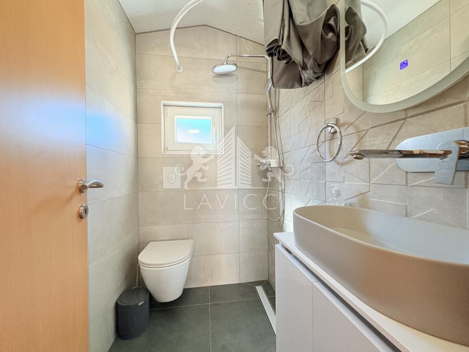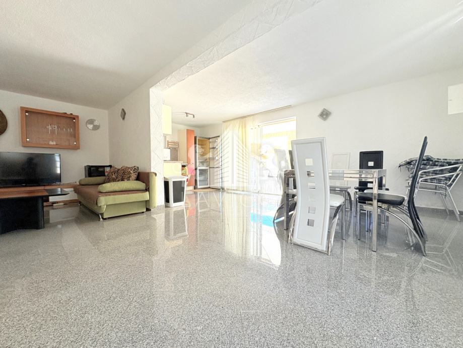 Kuća je potpuno namještena i opremljena, a nedavno je renovirana i adaptirana. Postavljena je nova fasada sa 10 cm stiropora, ugrađena je kvalitetna ALU-PVC stolarija, a podne obloge su izvedene u kombinaciji keramičkih pločica i laminata. Cijeli objekt klimatiziran je u svim prostorijama, što osigurava ugodan boravak tijekom cijele godine.