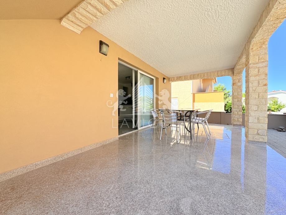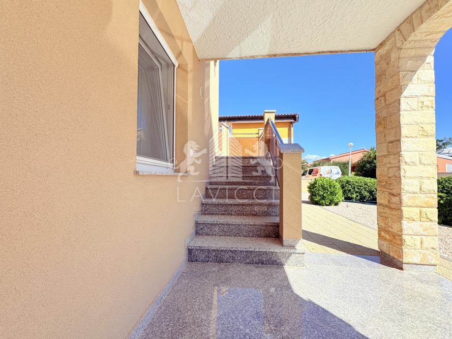 Sastoji se od dvije etaže. U prizemlju se nalazi garaža od 21 m², dnevni dio s kuhinjom, blagovaonicom i prostranim boravkom, te kupaonica s toaletom. Iz dnevnog prostora izlazi se na natkrivenu terasu koja pruža ugodan kutak za druženje i opuštanje. Vanjsko stubište vodi na kat gdje se smjestila natkrivena terasa, četiri komforne sobe i još jedna kupaonica s toaletom. Dvije sobe imaju izravan izlaz na terasu s koje se pruža pogled na mirno okruženje.