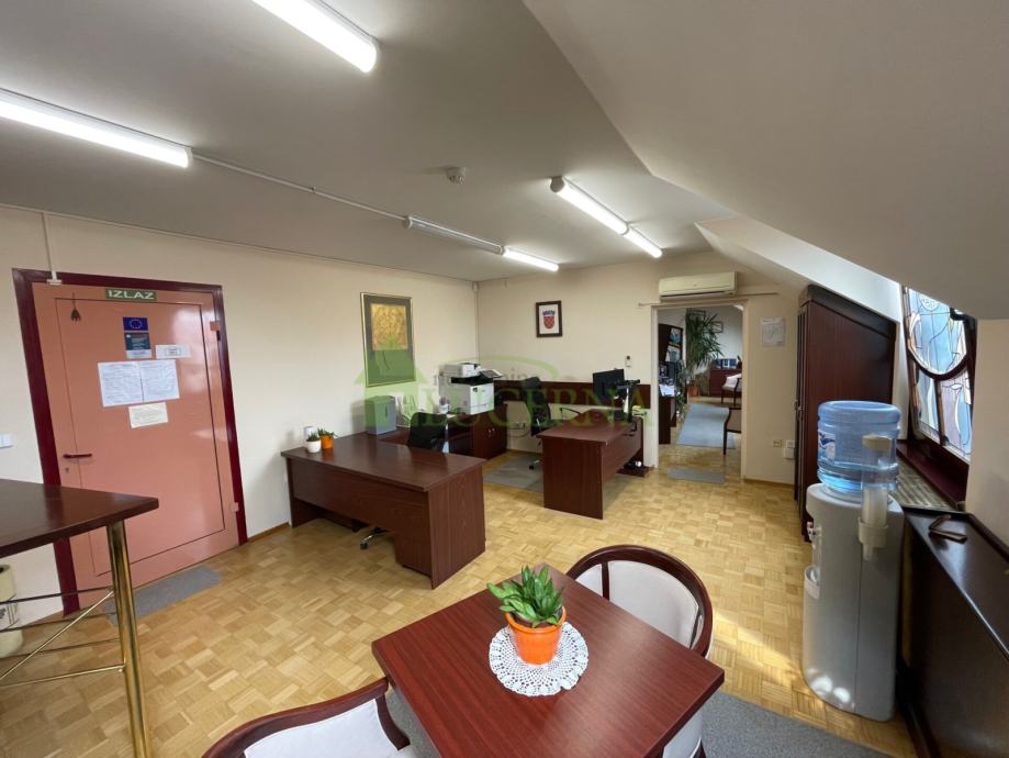 Ukupne površine 57,58 m² (u naravi dvije zasebne etaže spojene u jednu 28.74 m2 + 28.84 m2), prostor se sastoji od 2 prostorije, opremljena manja čajna kuhinja, te nudi sve preduvjete za udoban i produktivan radni dan. Grijanje je osigurano putem plinskog centralnog grijanja, a klima uređaj garantira ugodnu temperaturu tijekom vrućih ljetnih mjeseci.