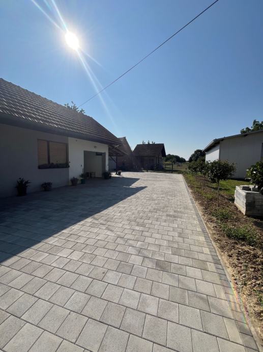 Dvorište koje je uz kuću i garažu su tlakovci, a ostali dio je travnati. Ograda je od željeza. Garaža je za jedan auto + 2 parking mjesta.