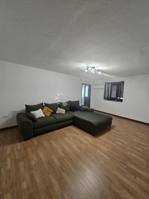 Prizemlje: dugački hodnik, kuhinja, kupaonica, prostrani dnevni boravak i unutarnje stepenice koje vode na kat.