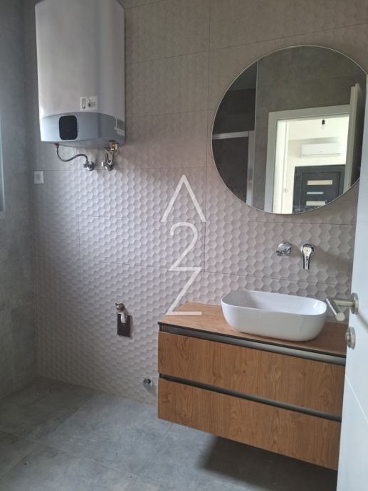 Značajke ove novogradnja su visoka kvaliteta gradnje, podno grijanje u kupaonici, klima uređaji u svim prostorijama, privlačni estetski završni detalji, kvalitetne podne obloge, električne rolete, PVC stolarija, portafon i- najvažnije od svega- 160 metara do mora!
