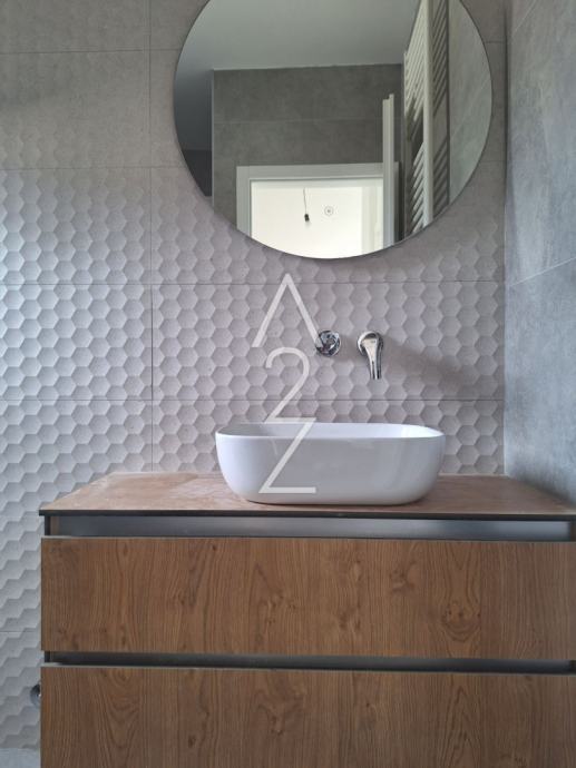 Značajke ove novogradnja su visoka kvaliteta gradnje, podno grijanje u kupaonici, klima uređaji u svim prostorijama, privlačni estetski završni detalji, kvalitetne podne obloge, električne rolete, PVC stolarija, portafon i- najvažnije od svega- 160 metara do mora!