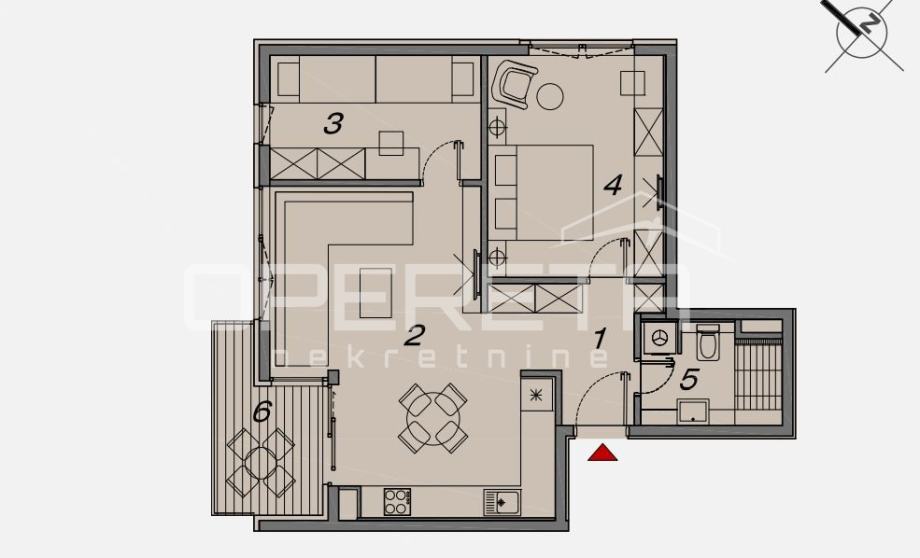 Stan B8 koji je useljiv i dostupan odmah, nalazi se na 1. katu neto obračunske površine 63,50m2, a sastoji se od: hodnika, dnevnog boravka, kuhinje i blagavaonice u open space konceptu, 2 prostrane spavaće sobe, te loggie i balkona. Ovaj prostor odiše kvalitetom, modernim dizajnom i pažnjom na detalje. Svaka prostorija je pažljivo osmišljena kako bi pružila maksimalnu udobnost i funkcionalnost.