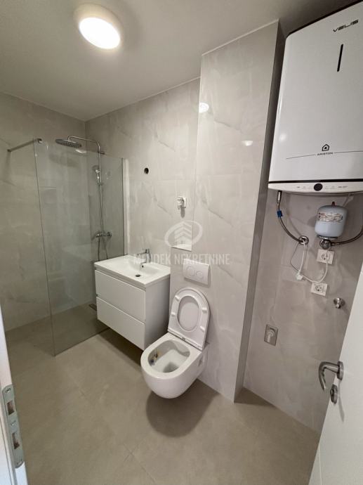 OPIS GRADNJE: vanjska ovojnica toplinske izolacije mineralne vune (12 cm) i DEMIT završnog sloja, pregradni unutarnji zidovi od opeke (cigle) debljine 10 cm, PVC stolarija s Low-E dvostrukim izo-staklima s komarnicima i električnim roletnim sustavom, grijanje i hlađenje na električnu energiju (Multi Split inverterski sustav),izolacija od buke između stanova/apartmana.
