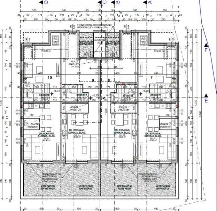 DVOETAŽNI 4 - SOBNI APARTMAN, 2. KAT, OZNAKE S7- sastoji se od: hodnik, dvije kupaonice, tri spavaće sobe, dnevni boravak, kuhinje s blagovaonicom i dvije terase, ukupne površine 122,11m2 + ostava u podrumu cca 5,50m2.