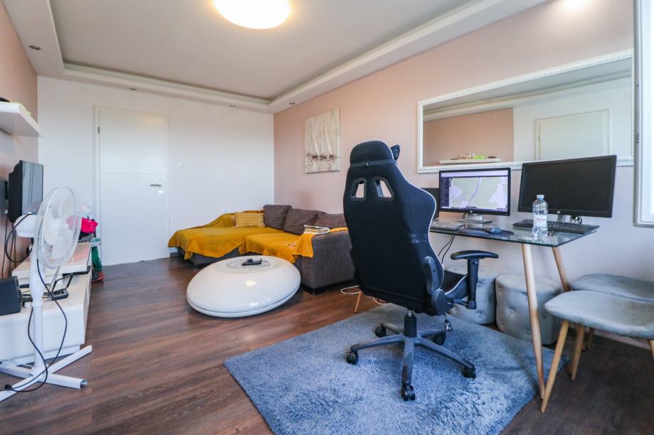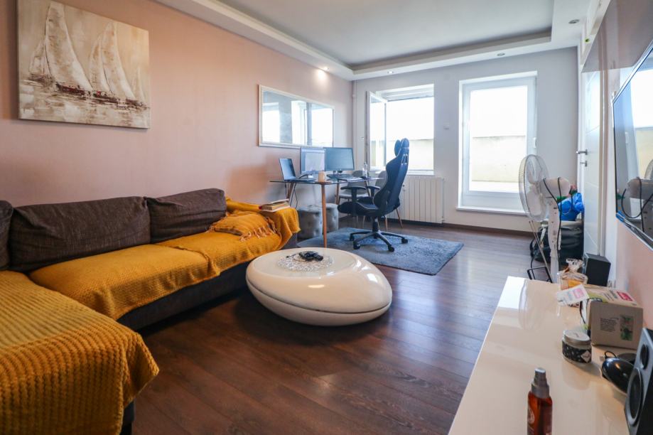 Stan je renoviran je 2021. godine i pripadaju mu ogromna terasa s predivnim pogledom te spremište. Stan je površine 46,49 m2, stambene površine 36 m2 te 46 m2 terase. Orijentacija je na sjever, zapad i jug.